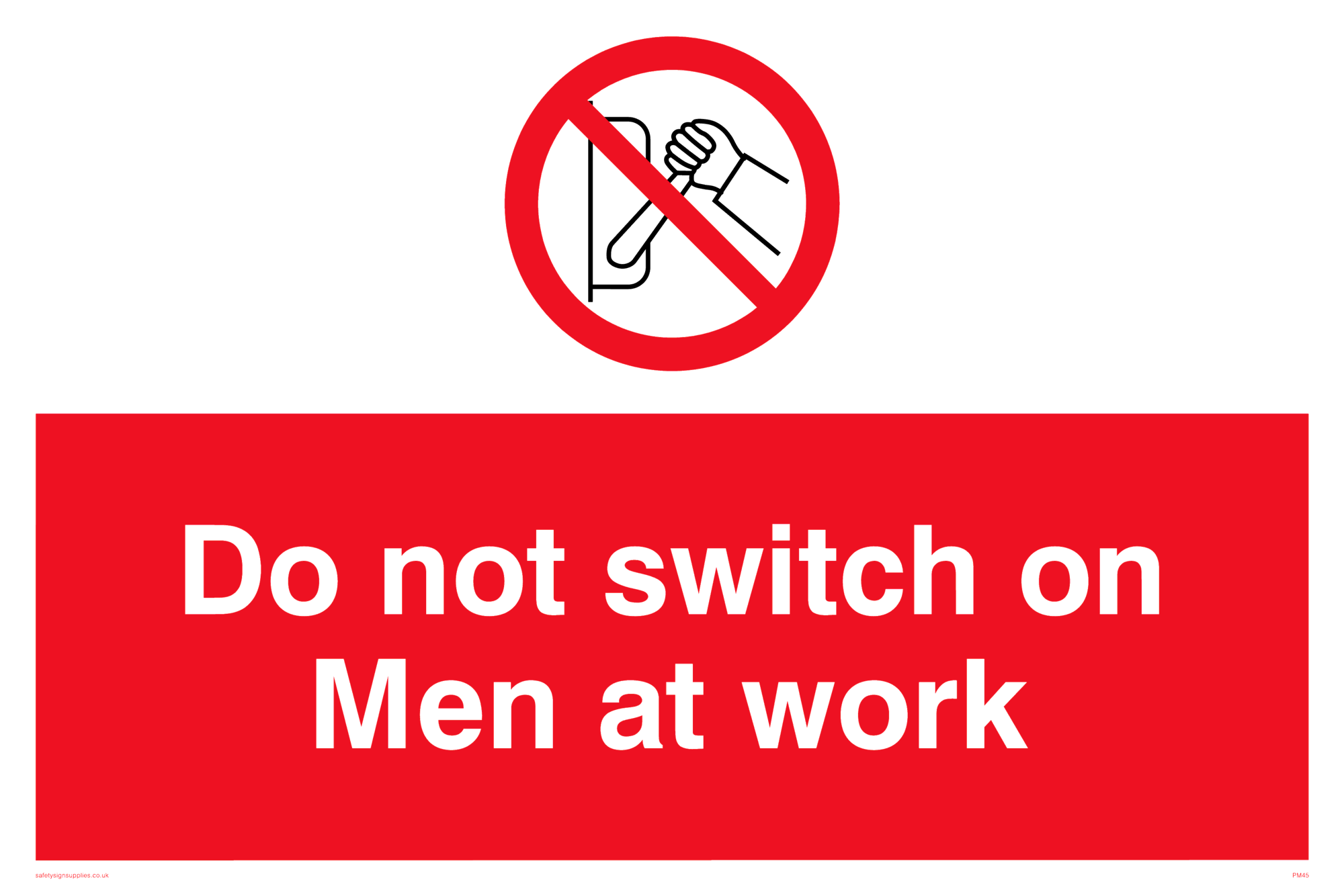 This sign contains a do not switch on symbol. Suitable for fixing with screws.