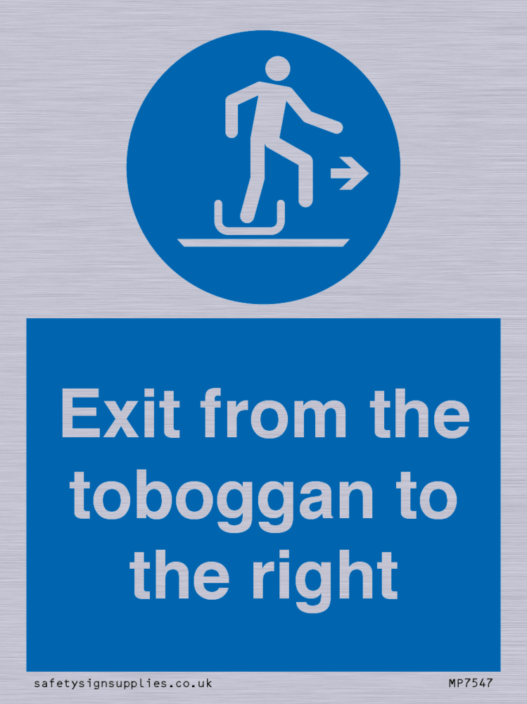 Sign Text: Exit from the toboggan to the right