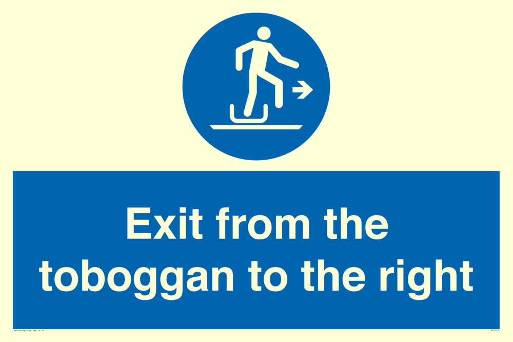 Sign Text: Exit from the toboggan to the right