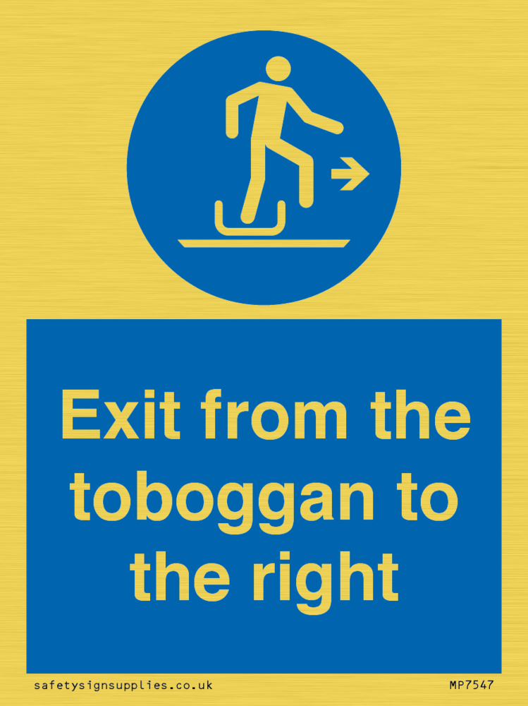 Sign Text: Exit from the toboggan to the right