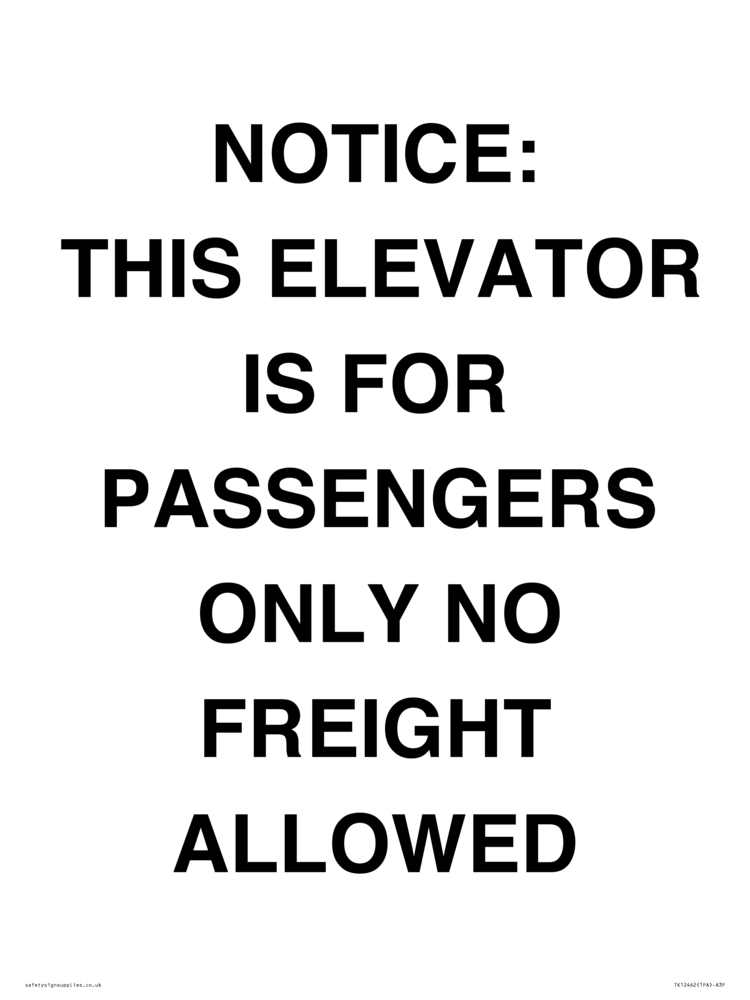 THIS ELEVATOR IS FOR PASSENGERS ONLY NO FREIGHT ALLOWED
