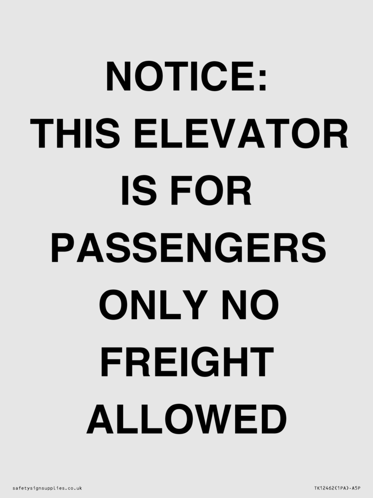 THIS ELEVATOR IS FOR PASSENGERS ONLY NO FREIGHT ALLOWED