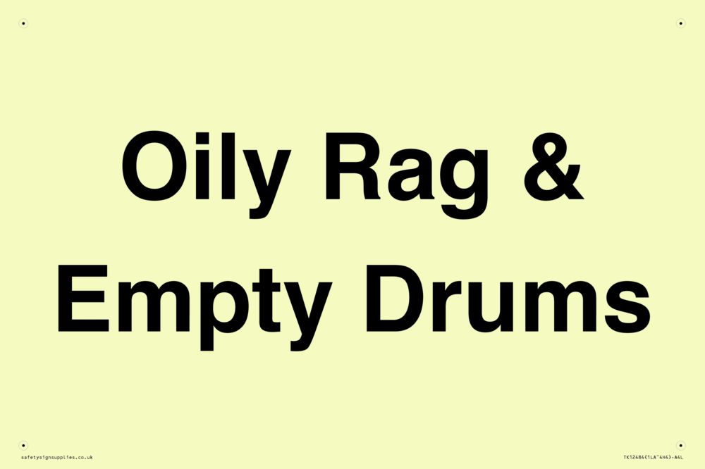 Sign Text: Oily Rag & Empty Drums