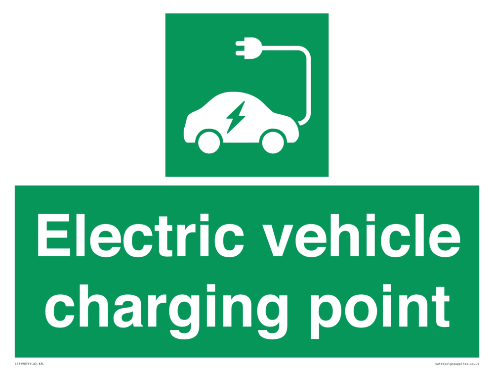 Sign Text: Electric vehicle charging point Dimensions: 400x300mm Material: Aluminum matte laminated with 2 channel Orientation: Landscape Text Colour: White Background Colour: Green More...