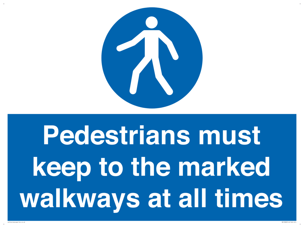 Sign Text: Pedestrians must keep to the marked walkways at all times