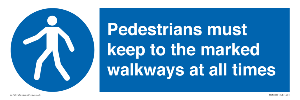 Sign Text: Pedestrians must keep to the marked walkways at all times