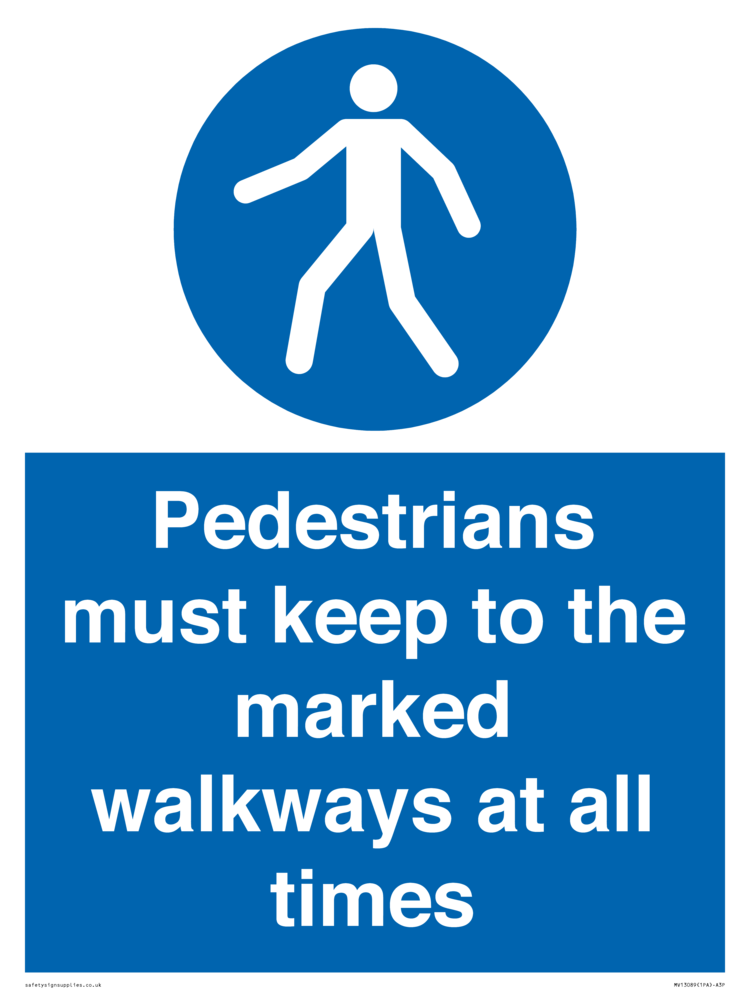 Sign Text: Pedestrians must keep to the marked walkways at all times
