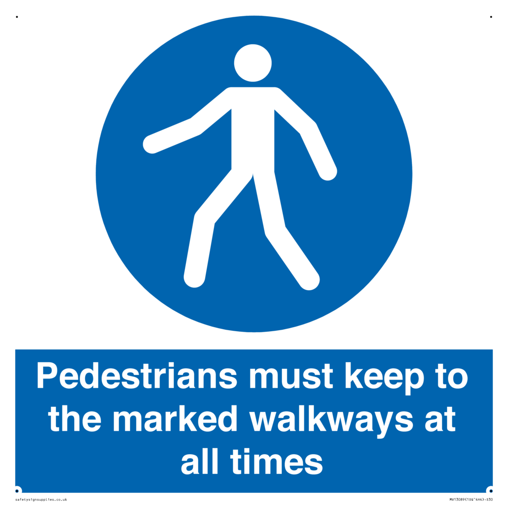 Sign Text: Pedestrians must keep to the marked walkways at all times