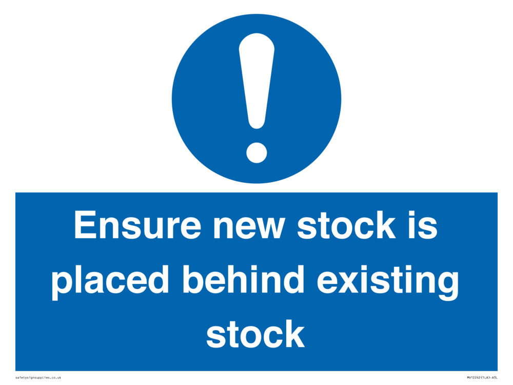 Sign Text: Ensure new stuck is placed behind existing stock