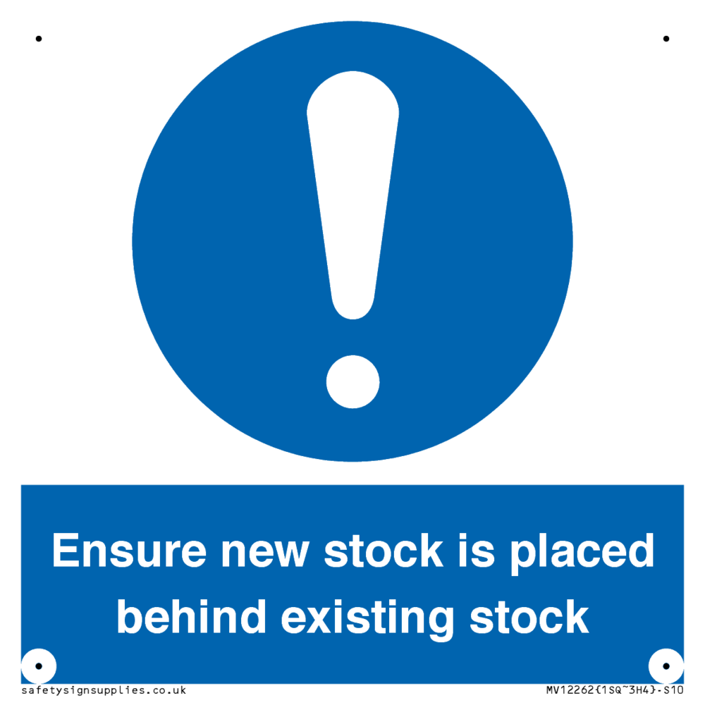 Sign Text: Ensure new stuck is placed behind existing stock
