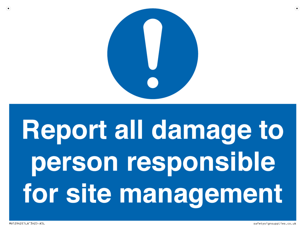 Sign Text: Report all damage to person responsible for site management