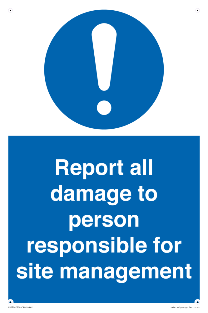 Sign Text: Report all damage to person responsible for site management