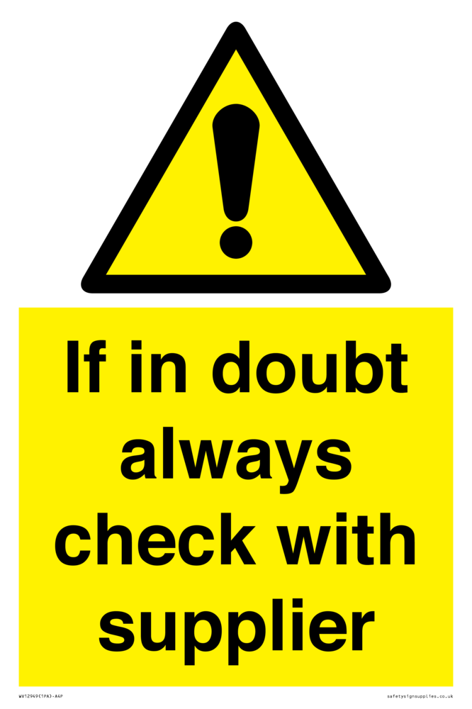 Sign Text: If in doubt always check with supplier