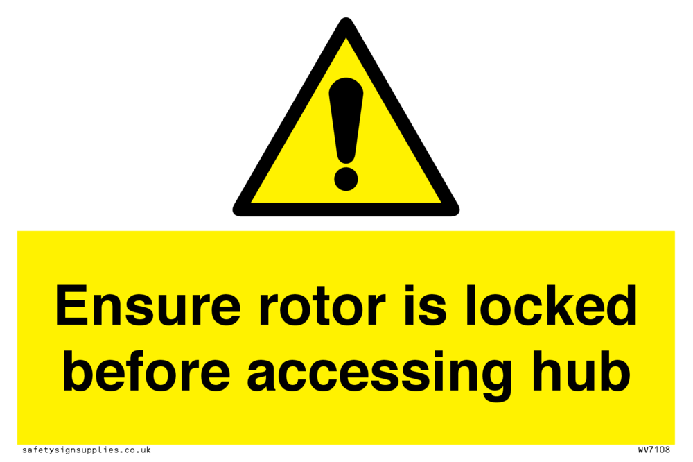 Ensure rotor is locked before accessing hub Sign