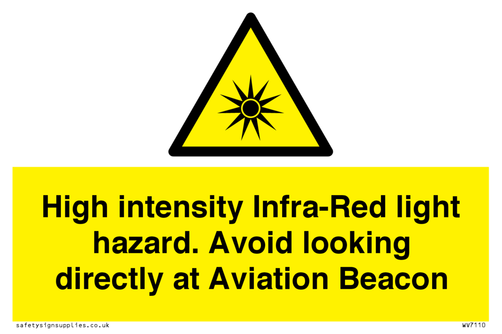Sign Text: High intensity Infra-Red light hazard. Avoid looking directly at Aviation Beacon