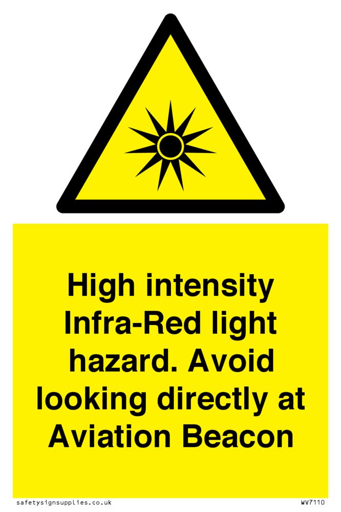 Sign Text: High intensity Infra-Red light hazard. Avoid looking directly at Aviation Beacon