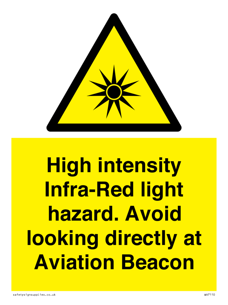 Sign Text: High intensity Infra-Red light hazard. Avoid looking directly at Aviation Beacon
