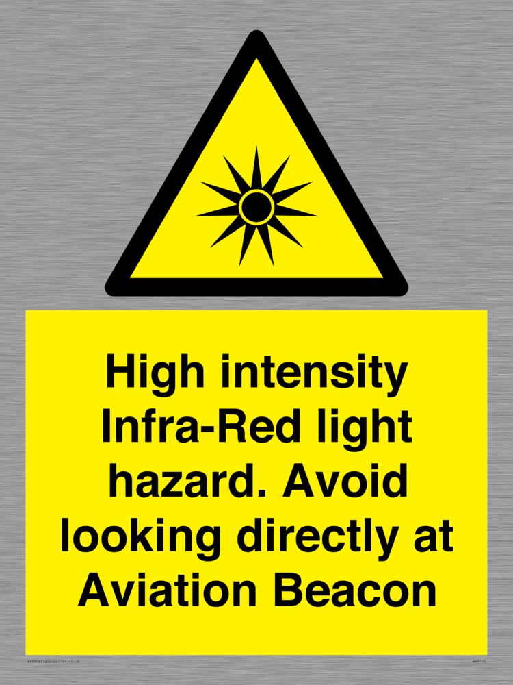 Sign Text: High intensity Infra-Red light hazard. Avoid looking directly at Aviation Beacon