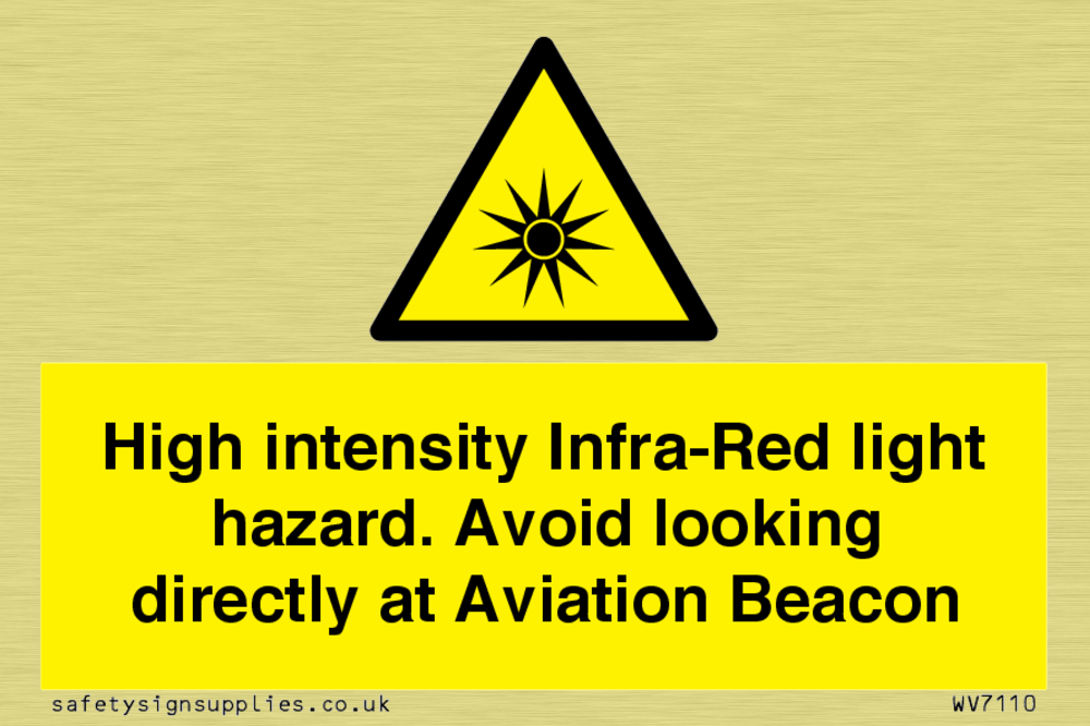 Sign Text: High intensity Infra-Red light hazard. Avoid looking directly at Aviation Beacon