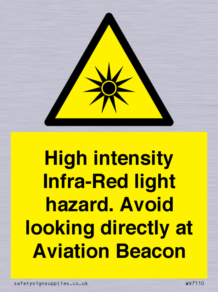 Sign Text: High intensity Infra-Red light hazard. Avoid looking directly at Aviation Beacon