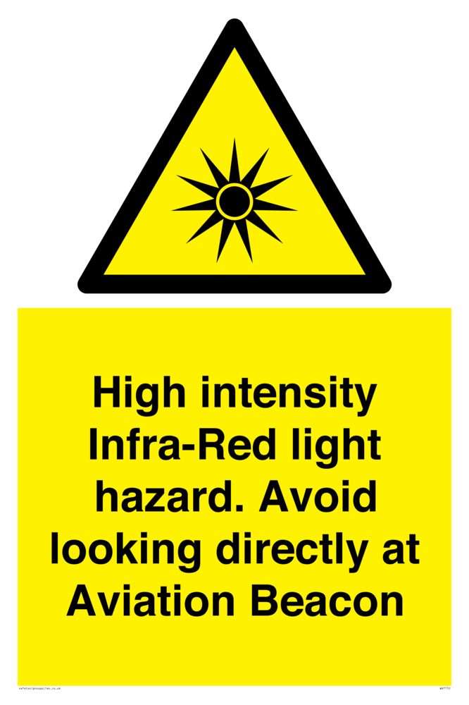 Sign Text: High intensity Infra-Red light hazard. Avoid looking directly at Aviation Beacon