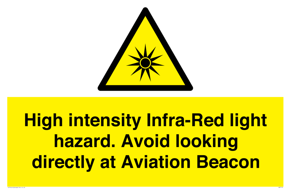 Sign Text: High intensity Infra-Red light hazard. Avoid looking directly at Aviation Beacon
