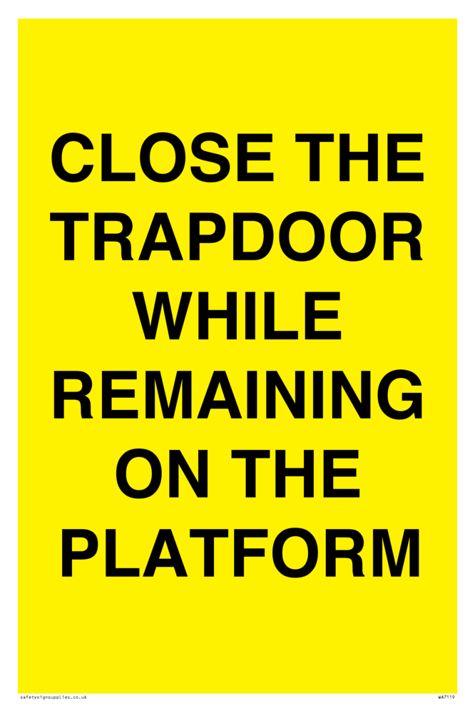 Sign Text: CLOSE THE TRAPDOOR WHILE REMAINING ON THE PLATFORM
