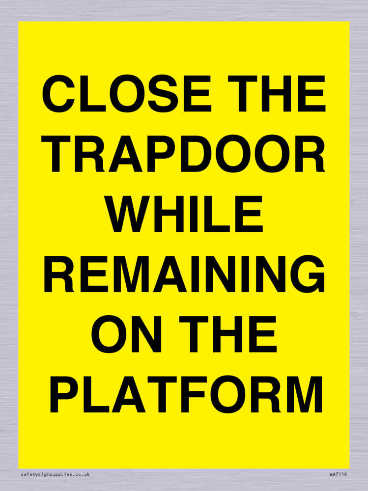 Sign Text: CLOSE THE TRAPDOOR WHILE REMAINING ON THE PLATFORM