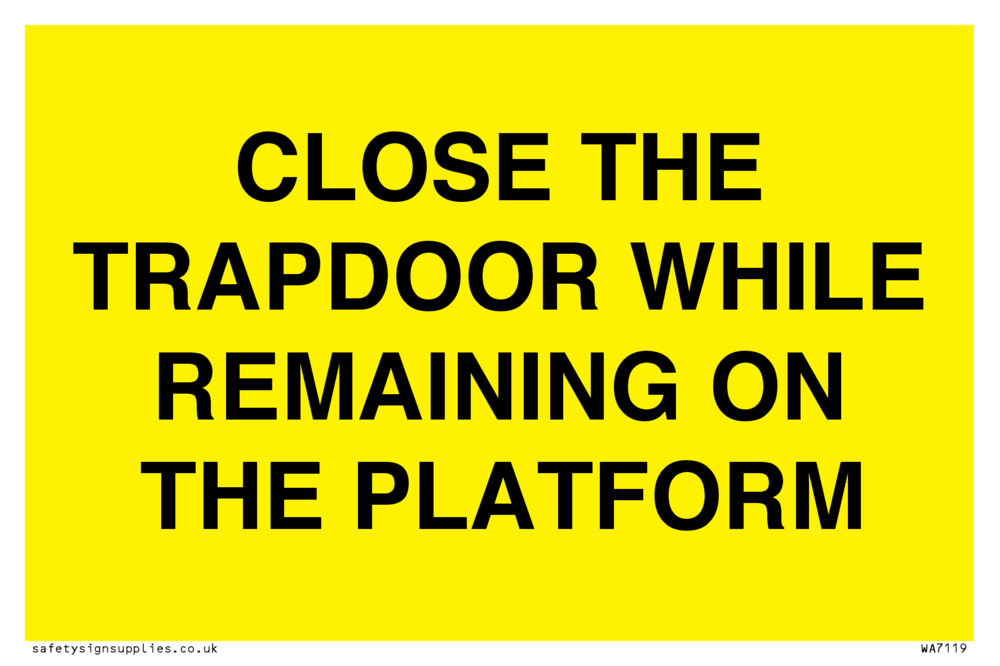 Sign Text: CLOSE THE TRAPDOOR WHILE REMAINING ON THE PLATFORM