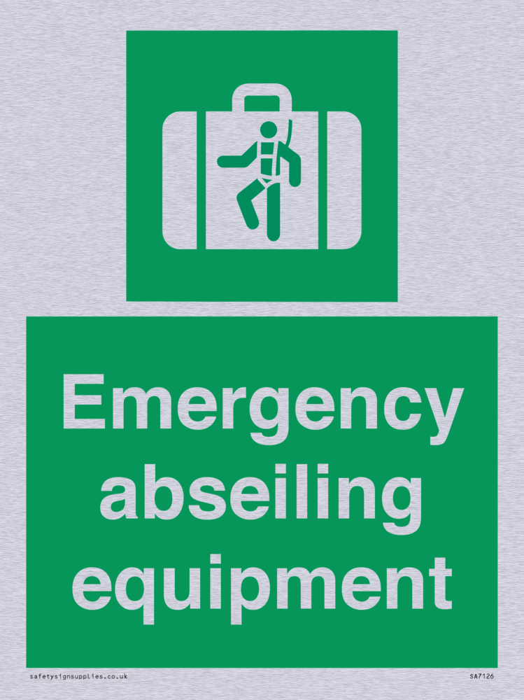 Sign Text: Emergency abseiling equipment