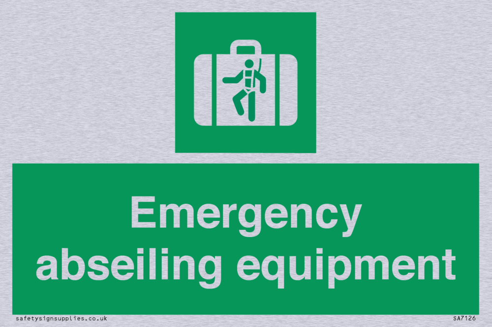 Sign Text: Emergency abseiling equipment