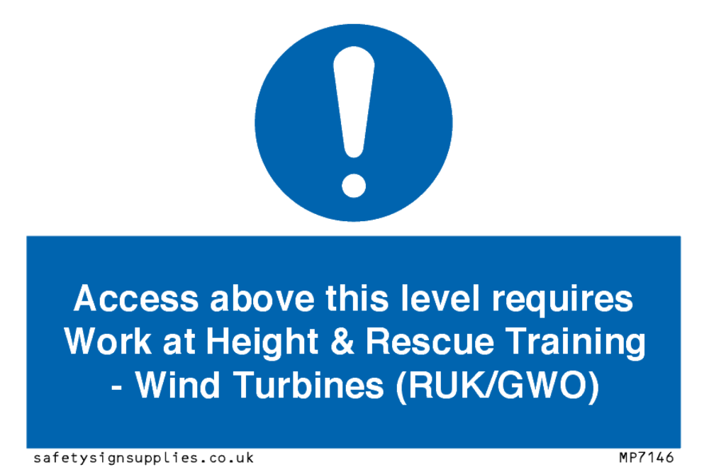 Access above this level requires Work at Height & Rescue Training - Wind Turbines (RUK/GWO) Sign