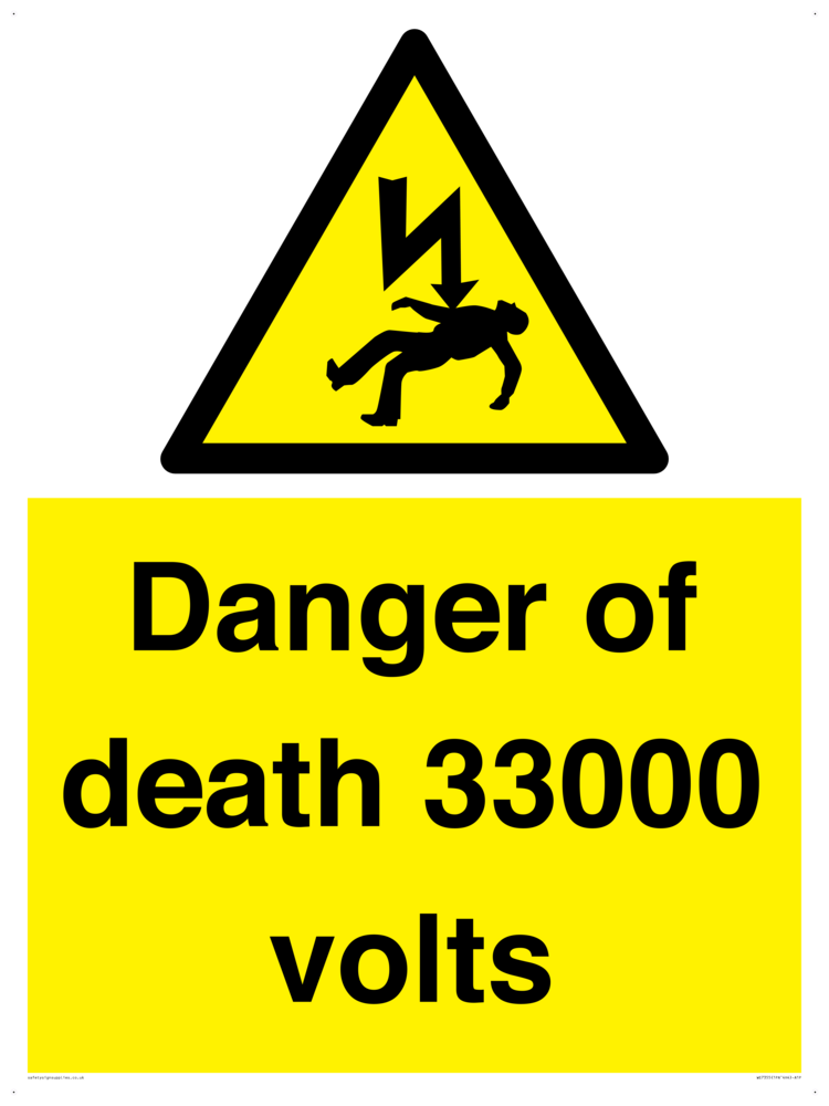 Sign Text: Danger of death 33000 volts