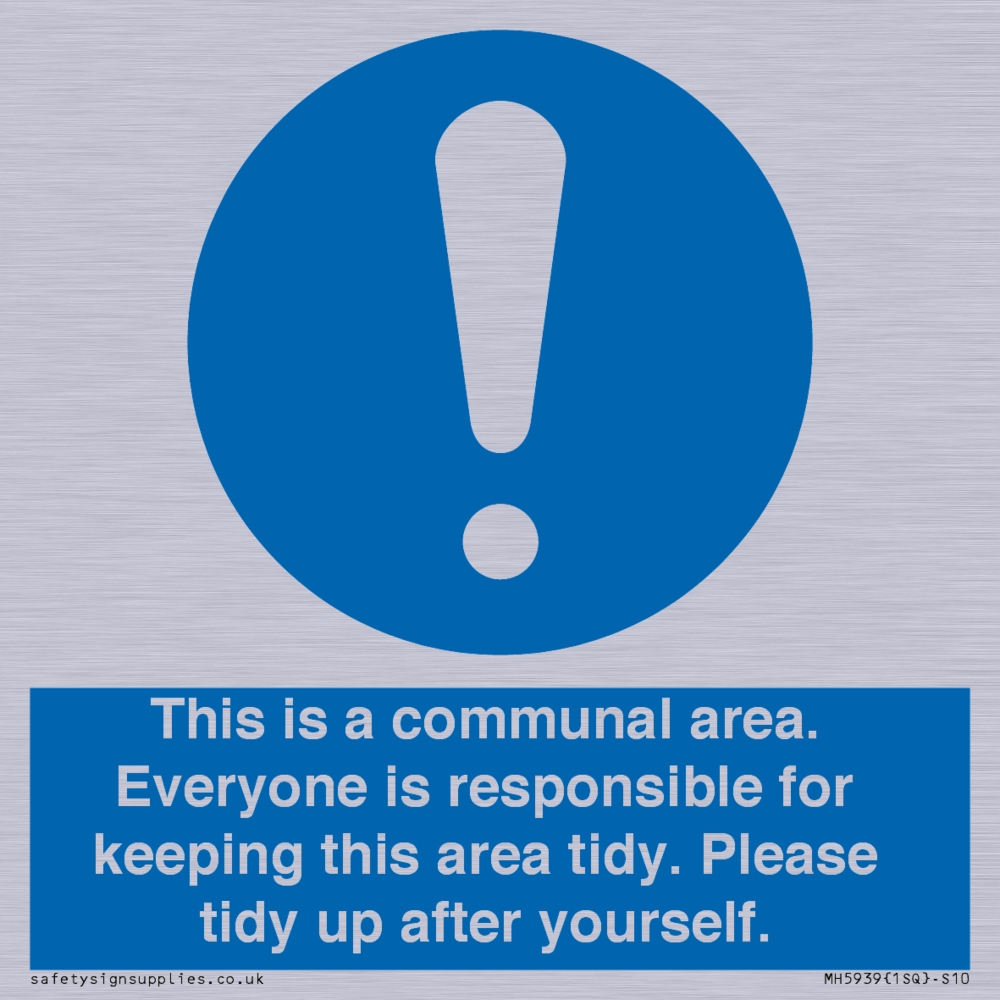 Sign Text: This is a communal area. Everyone is responsible for keeping this area tidy. Please tidy up after yourself.