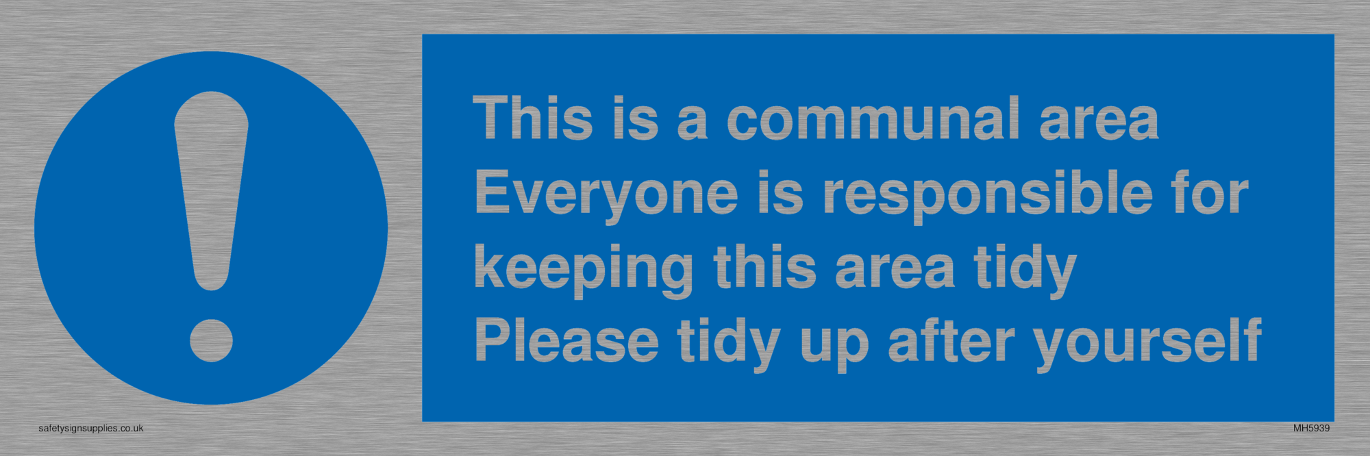 This sign contains a general Mandatory Exclamation Symbol - exclamation mark in white on blue circle background.