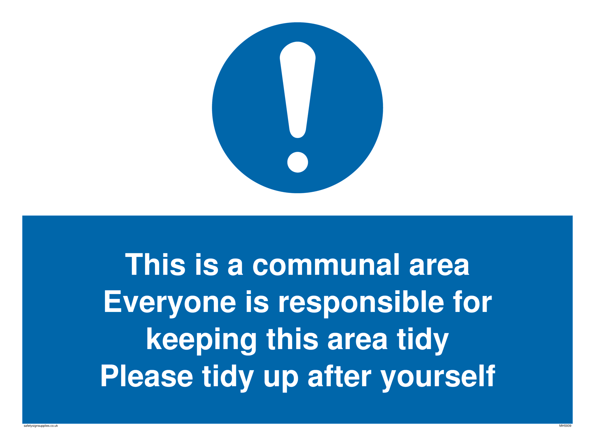 This sign contains a general Mandatory Exclamation Symbol - exclamation mark in white on blue circle background.