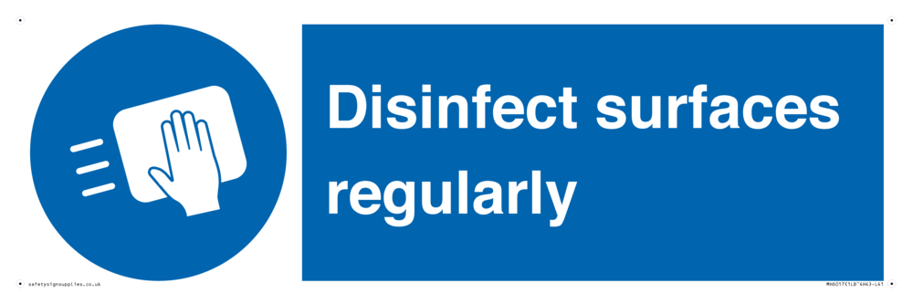 Sign Text: Disinfect surfaces regularly