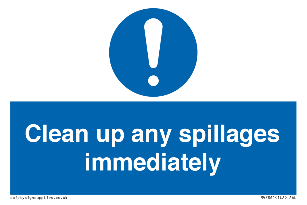 This sign contains a general Mandatory Exclamation Symbol - exclamation mark in white on blue circle background.