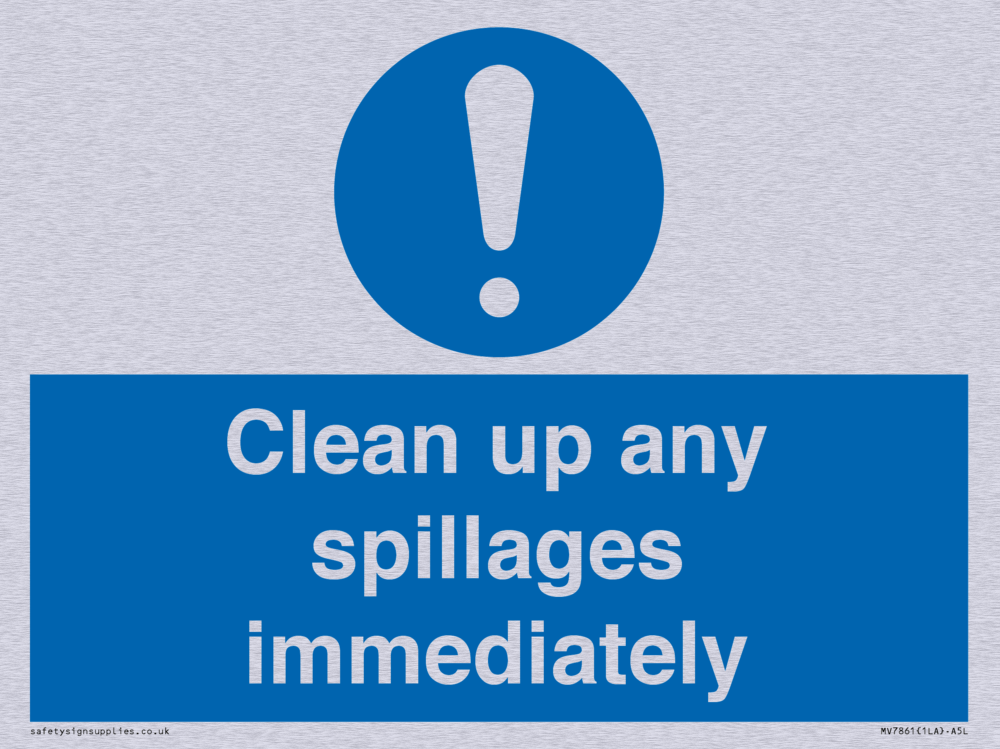 This sign contains a general Mandatory Exclamation Symbol - exclamation mark in white on blue circle background.