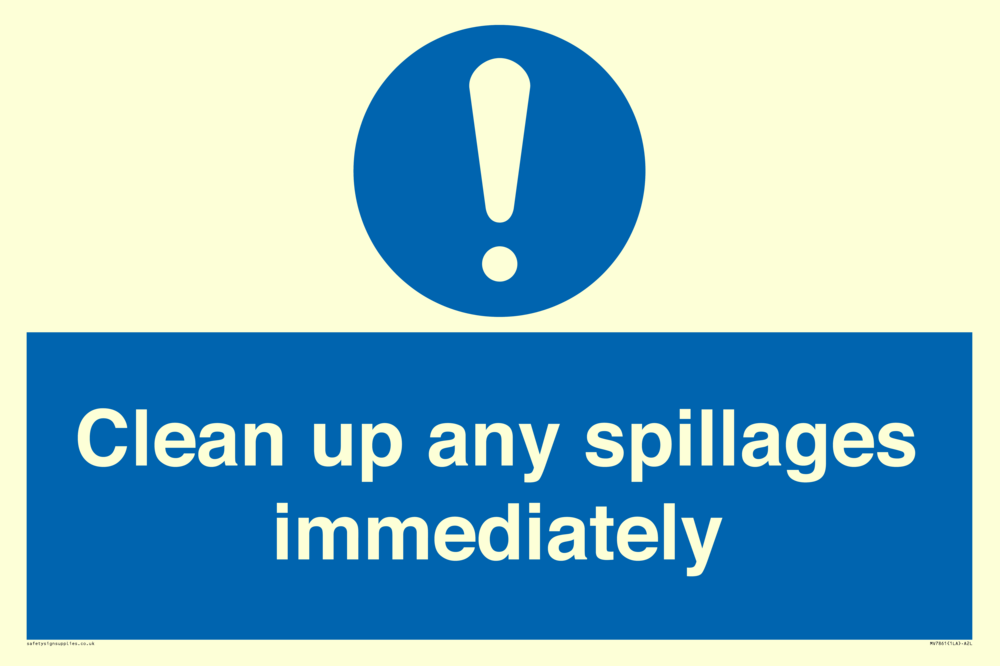 Sign Text: Clean up any spillages immediately