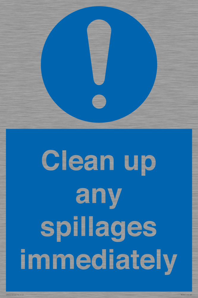 Sign Text: Clean up any spillages immediately
