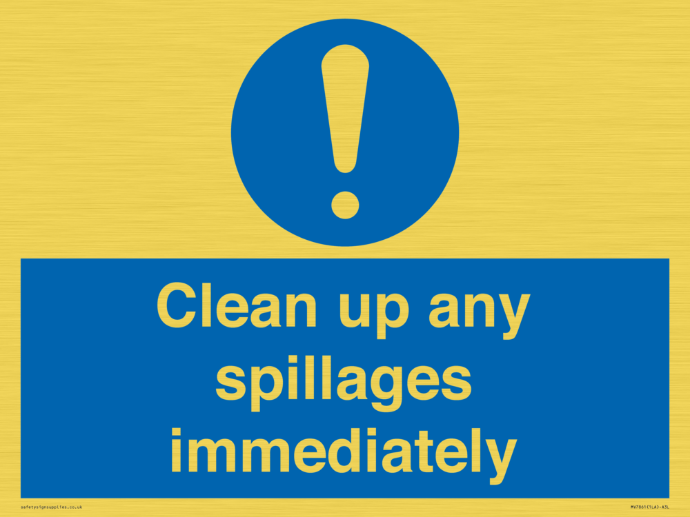 Sign Text: Clean up any spillages immediately