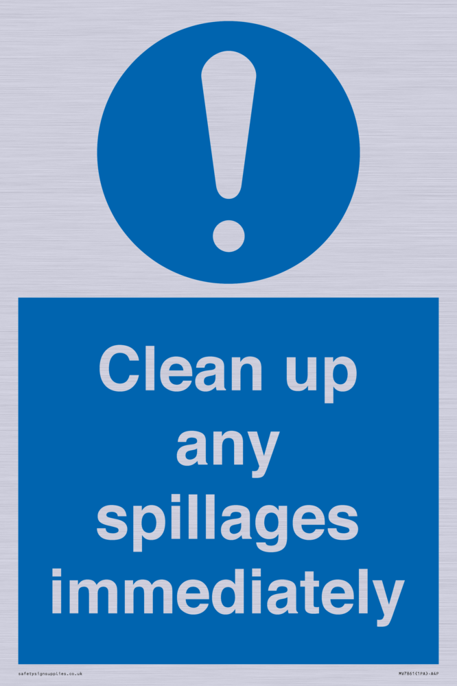 This sign contains a general Mandatory Exclamation Symbol - exclamation mark in white on blue circle background.