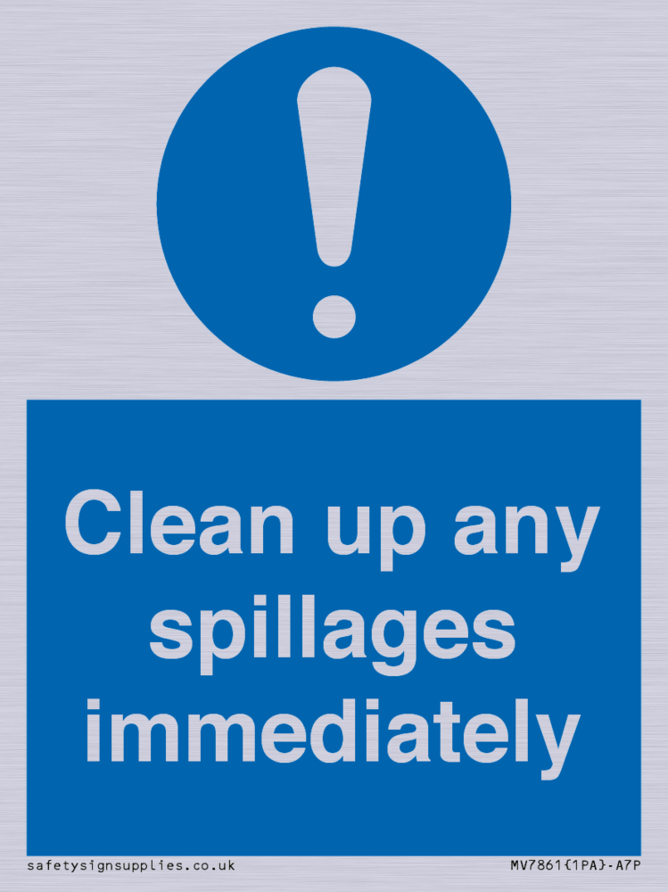 This sign contains a general Mandatory Exclamation Symbol - exclamation mark in white on blue circle background.