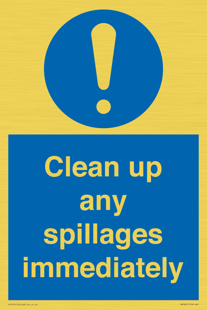 Sign Text: Clean up any spillages immediately