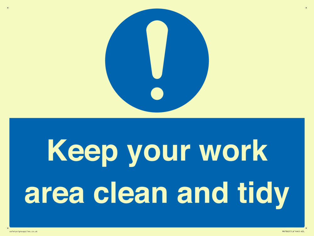 Sign Text: Keep your work area clean and tidy