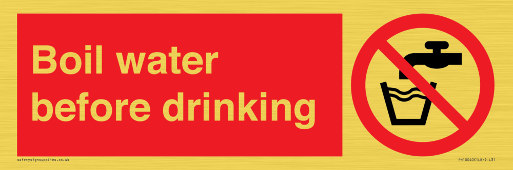 This is a brushed brass/gold effect self adhesive vinyl sign.