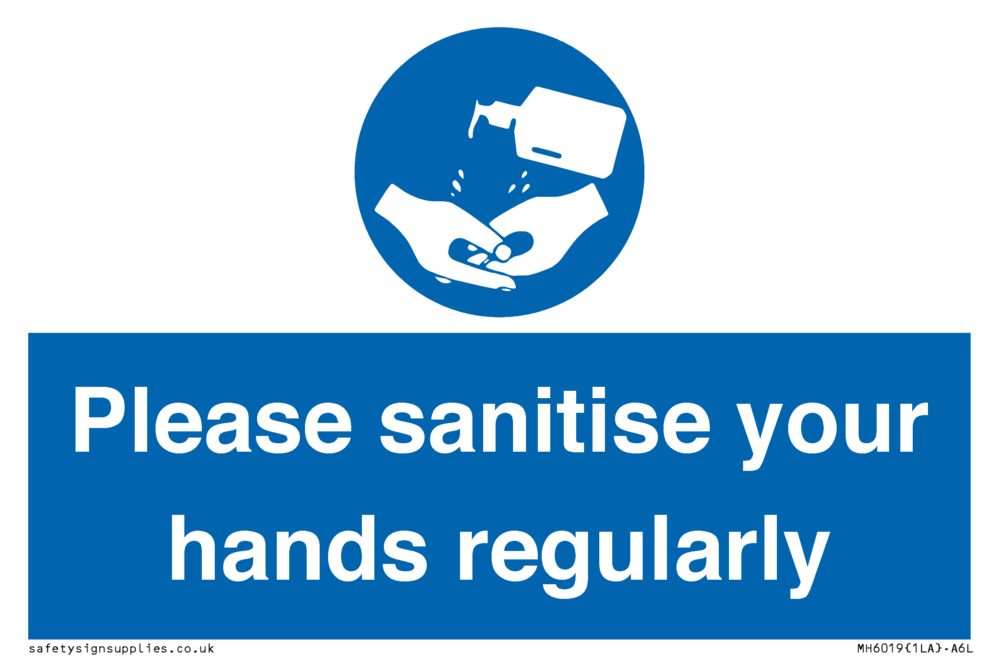 Sign Text: Please sanitise your hands regularly