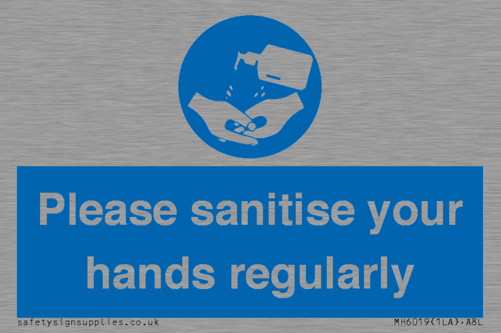 Sign Text: Please sanitise your hands regularly