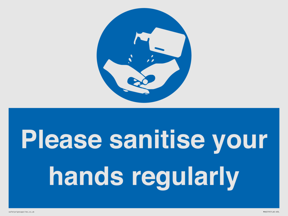Sign Text: Please sanitise your hands regularly
